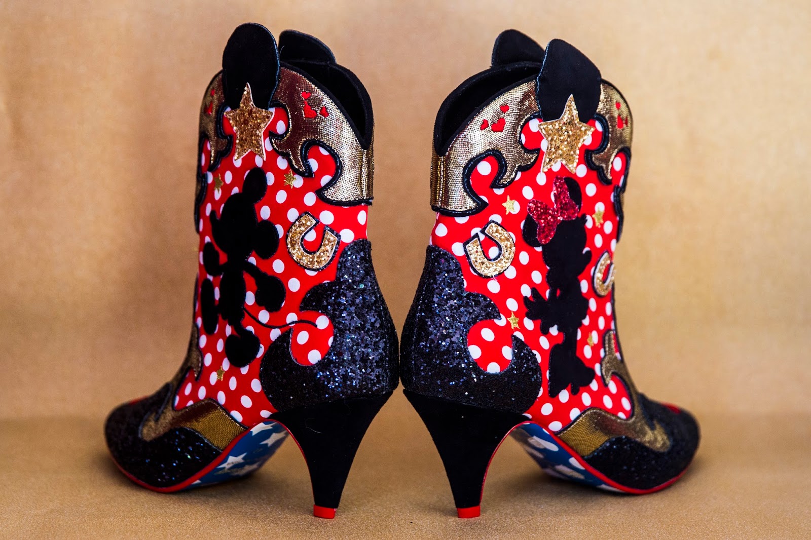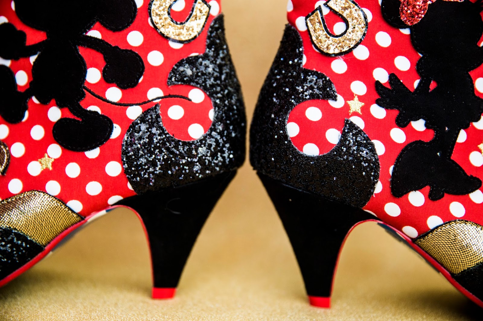 Now I think my favourite thing about these is the fact that each boot is different. The right is covered by a strong silhouette of Minnie mouse with her trademark sparkly bow, while the left is mirrored with a playful Mickey Mouse, I imagine most people walking past wouldn't notice but its things like this that make me love Irregular Choice.